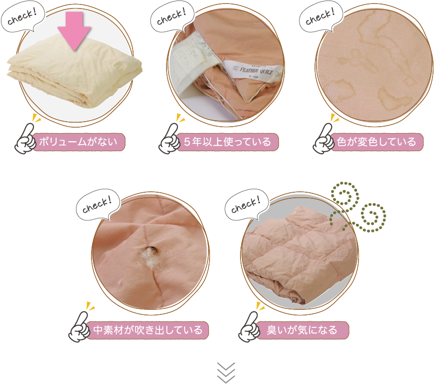 汚れの蓄積や、保温力の低下などが進行していきます。